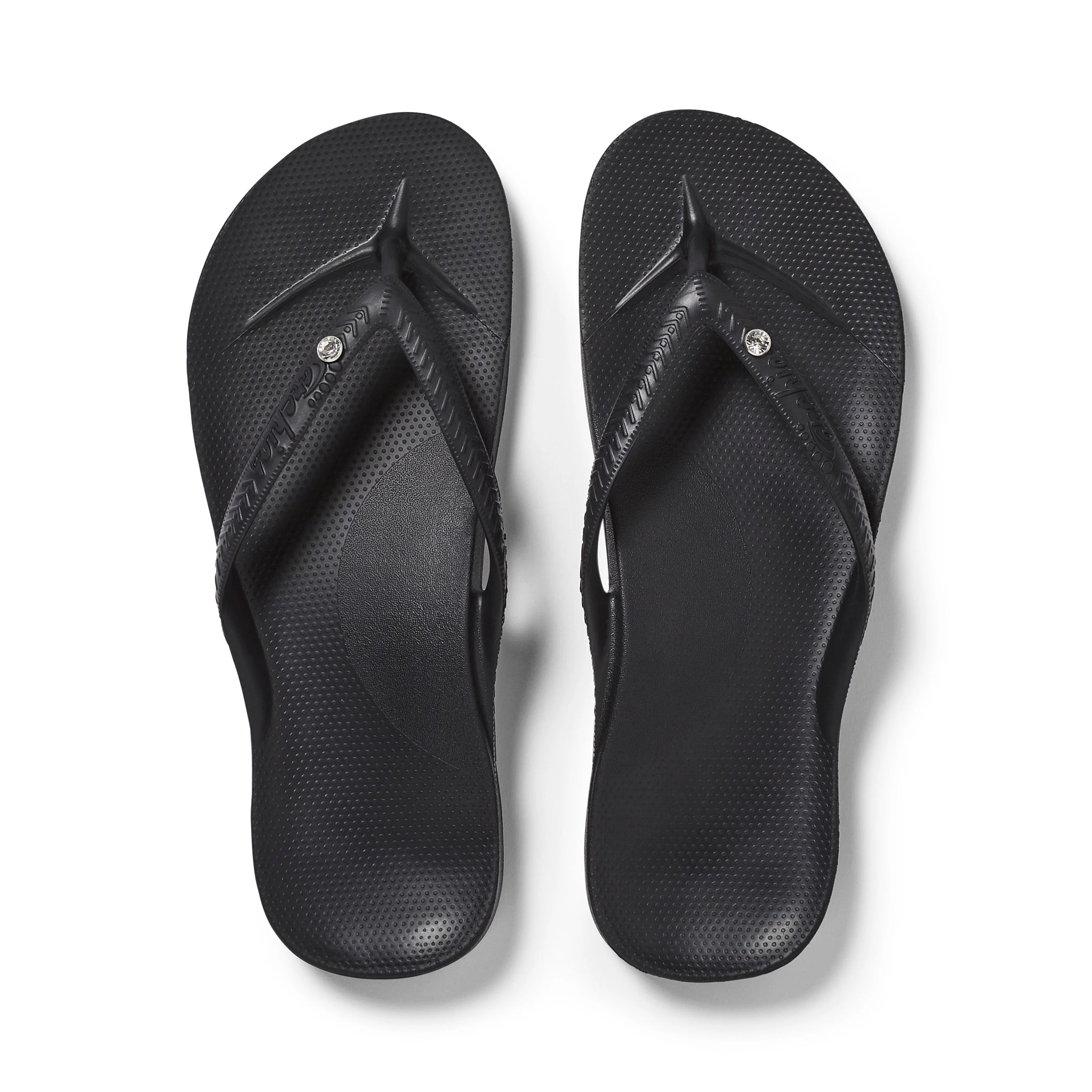 A pair of arch support thongs so comfy and supportive, you'll never want to take them off your feet plus a crystal