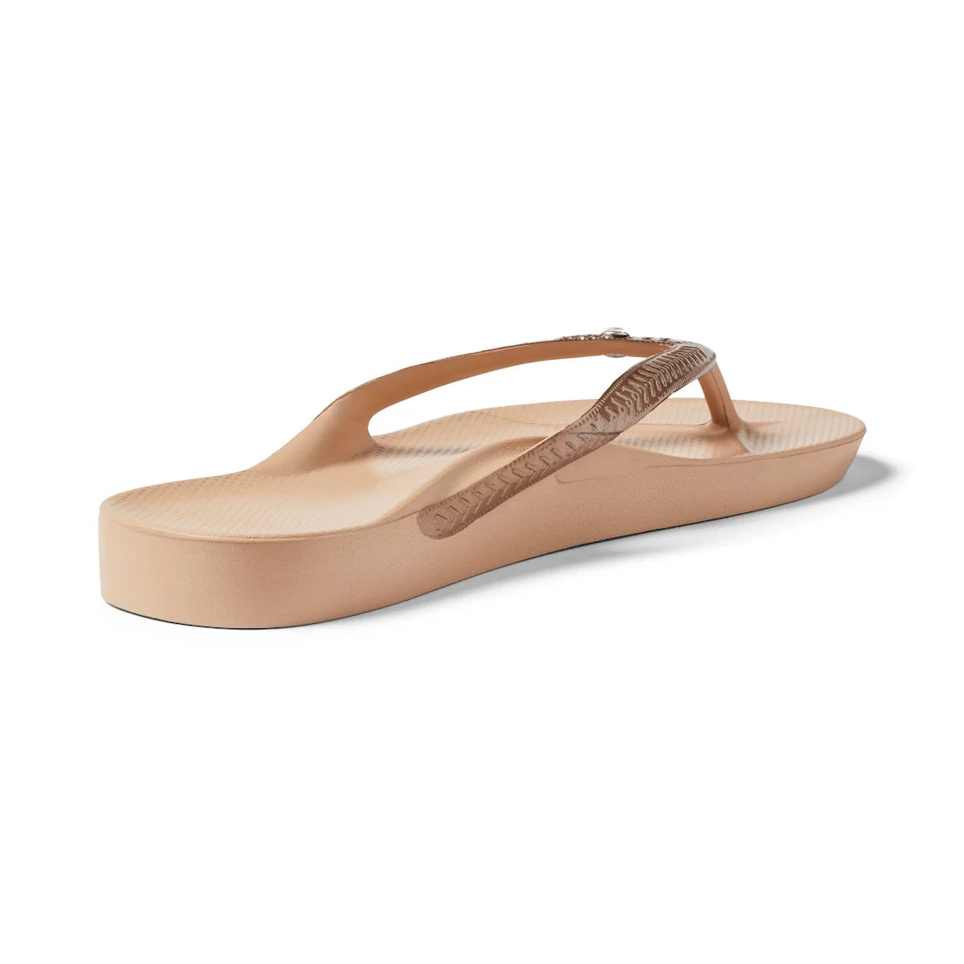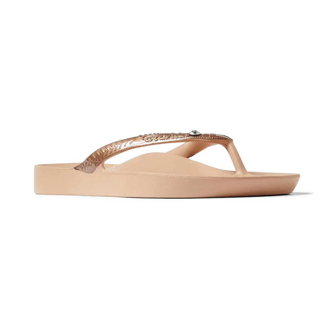 A pair of arch support thongs so comfy and supportive, you'll never want to take them off your feet plus a crystal